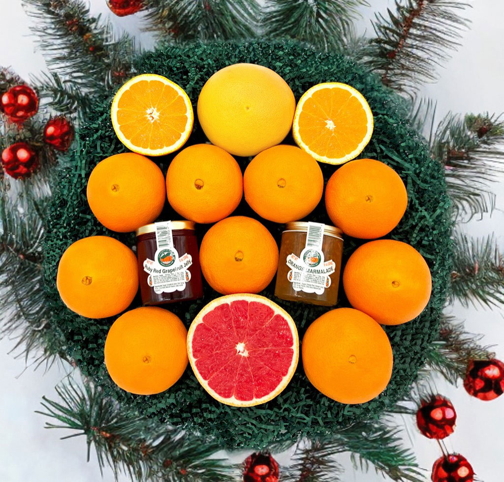 This juicy assortment of holiday cheer is bursting with goodness! Not only is it loaded with the most delicious citrus we have to offer, it also includes an 8 oz. jar of must-have Ruby Red Grapefruit Jelly and an 8 oz jar of flavorful Orange Marmalade, making this the perfect gift to celebrate the season!